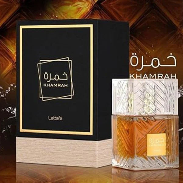 Lattafa Khamrah is a warm, luxurious, and spicy-sweet fragrance inspired by the richness of Middle Eastern perfumery. Opening with bold notes of cinnamon, nutmeg, and bergamot, it quickly unfolds into a heart of dates, praline, and soft florals like tuberose and lily of the valley. The dry-down is deep and indulgent, blending vanilla, tonka bean, myrrh, and amberwood for a cozy, long-lasting trail.